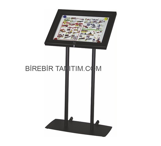 Kilitlenebilir Bilgilendirme Panosu şık, zarif ve ağır duruşuyla öne çıkar. Kilitlenebilir olmasının yanında ürün derinliği, su geçirmezlik, menteşeli kapı, akrilik yüzey gibi özellikleriyle dikkat çeker. Ürün kolay taşıma için tekerlekli olarak tasarlanmıştır. İki ayaklı zarif profil ve eğimli bilgilendirme panosu yapısı göze hitap eder.