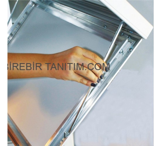 – İki kolonlu kilitlenebilir ve menteşeli dizaynla kolay görsel değişimi sağlar.