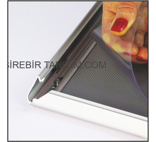 Tik Tak Çerçeve - Güvenlikli Alüminyum Afiş Çerçevesi 25 mm, çerçevenin içindeki görselin alınmasının veya izinsiz değiştirilmesinin önlenmesi amacıyla kullanılır. Çerçevedeki ekstra yaylar ve özel profil dizaynı sayesinde kapaklarının açılması zorlaştırılmış ve güvenli hale getirilmiştir. Güvenlikli Afiş çerçevesi içinde görsel malzemelerinizi sergileyebilir, müşteri ve ziyaretçilerinize mesajınızı iletebilirsiniz.
