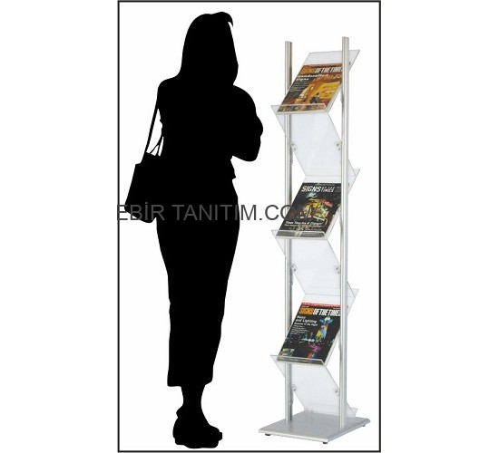 Broşür tutucu dizaynı zikzak şeklinde olup çift ayaklı ve dikkat çekicidir.